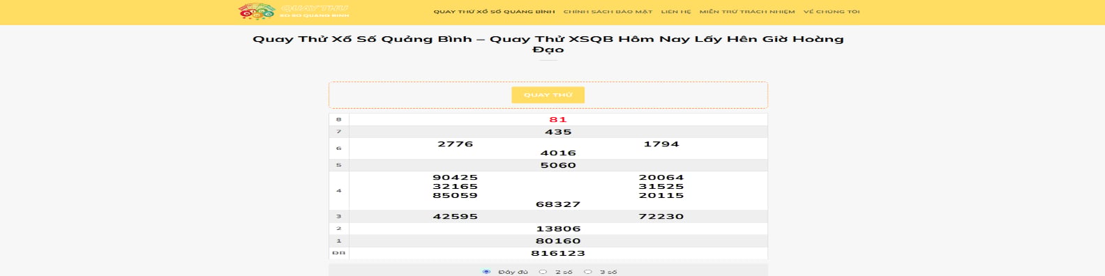 Quay Thử Xổ Số Quảng Bình là tiện ích quay thử kết quả XSQB giờ hoàng đạo miễn phí và chính xác hiện nay, hỗ trợ dễ dàng soi cầu lô gan & bạch thủ, tham khảo bộ số may mắn lấy hên.